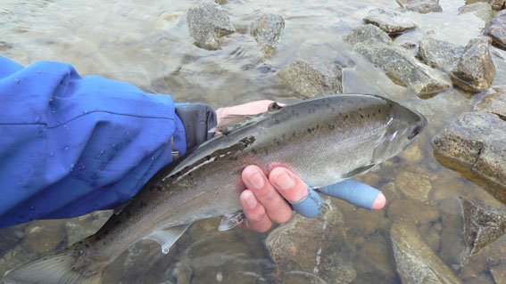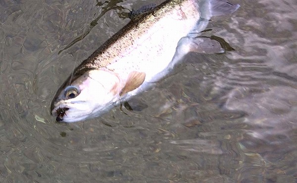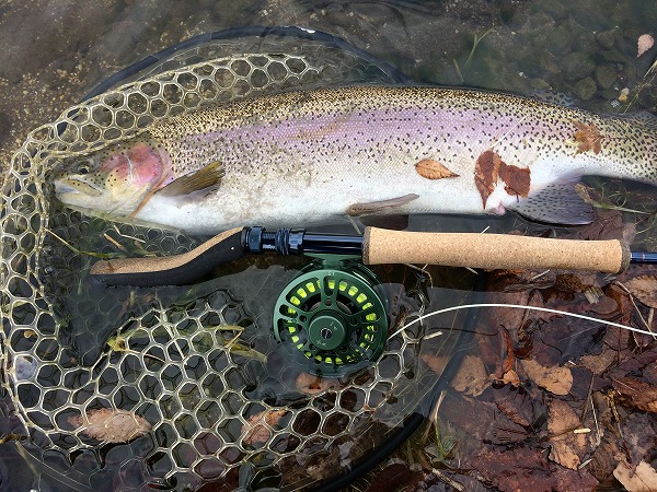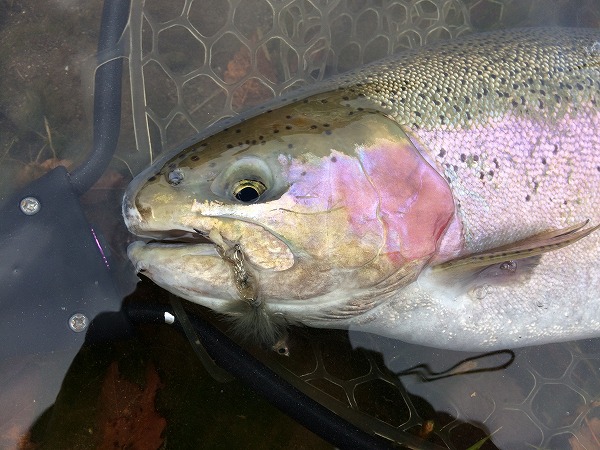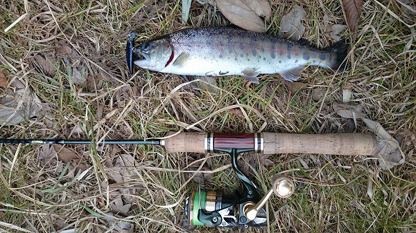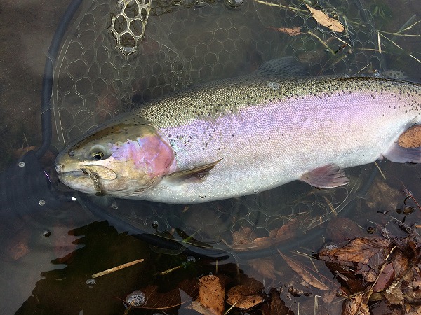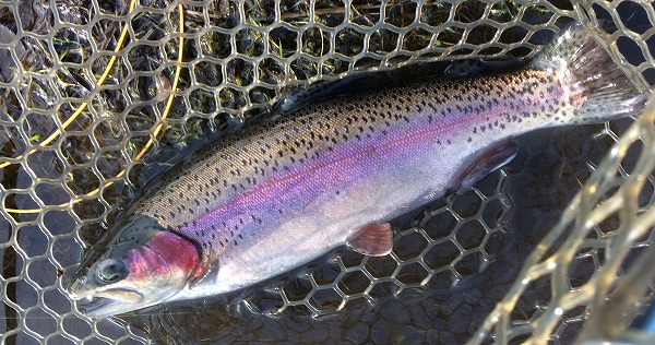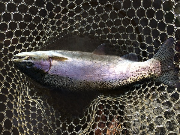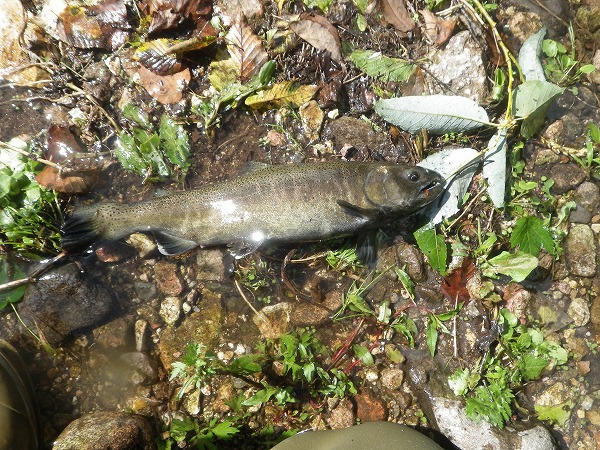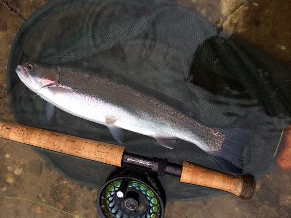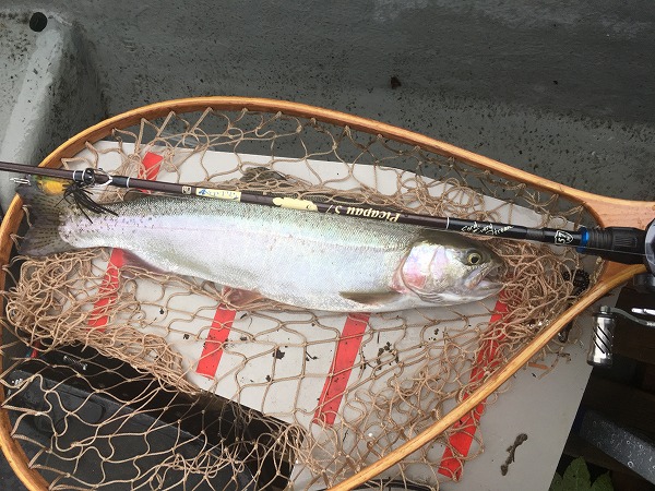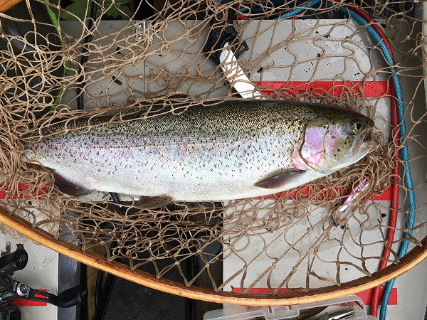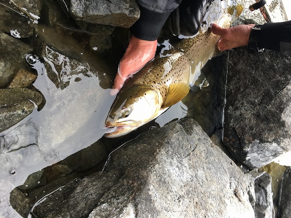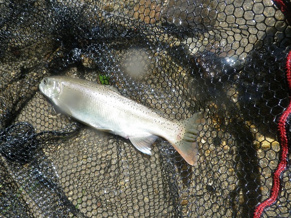 今年の放流マスはわりと鰭が綺麗で型も40〜45センチ有り