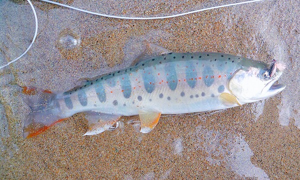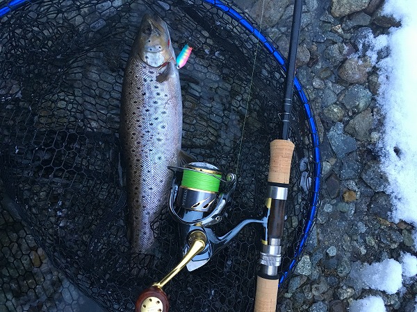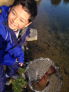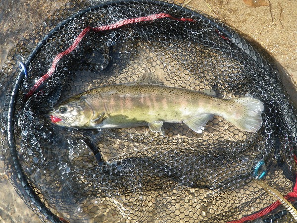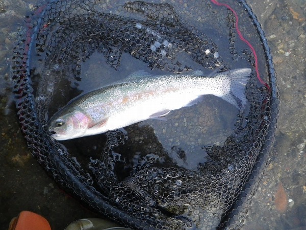 4時頃風が無くなったので、大尻に移動し放流マスを狙いました。