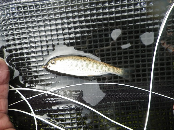 ワカサギ・ウグイ・ヒメ・ホン稚魚、モンカゲもチラホラ程度で、魚を集められる規模ではなく