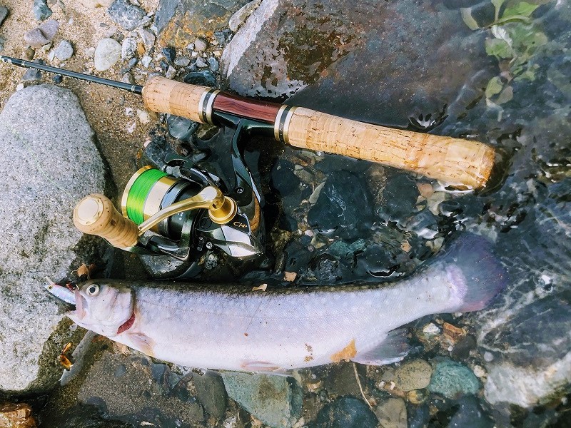 だいぶ釣り切られた感でしたが、なんとかヤマメの顔を見ることが出来ました。